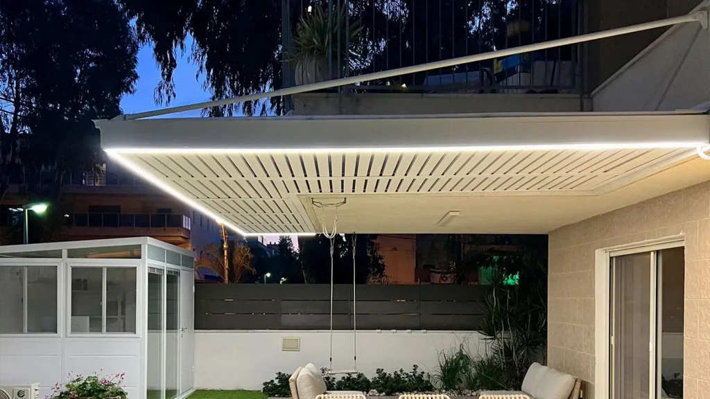 הטופ של עולם הפרגולות – מראה נקי לחלוטין, ללא עמודים וללא כבלים גלויים.